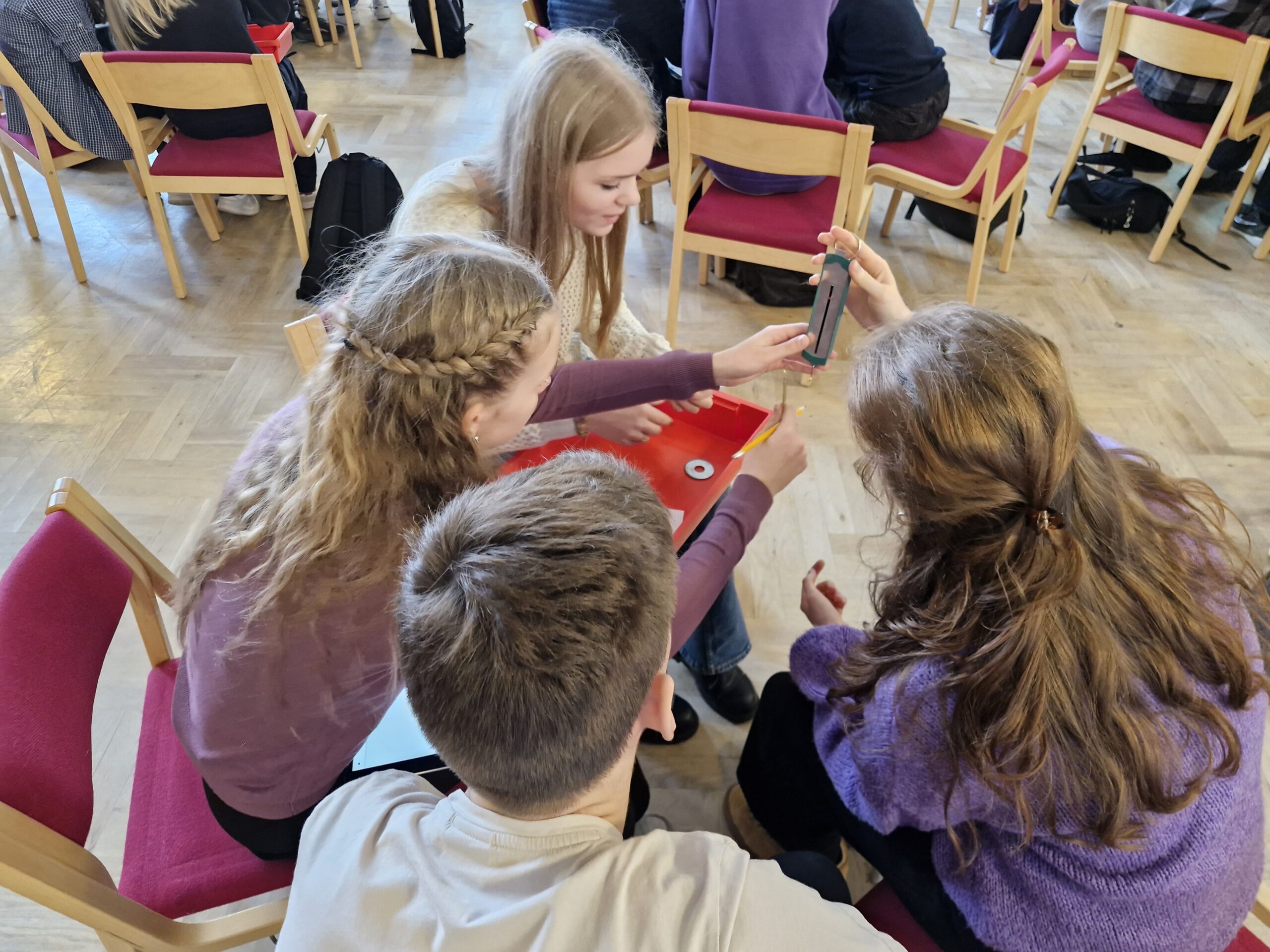 Saku Gümnaasiumis leidis täna aset 12. Harjumaa õpilastele mõeldud füüsika ja keemia viktoriin “Välk ja pauk!”, kus osalesid 19 Harjumaa kooli 8.-9. klasside võistkonda. Randvere kooli esindasid 9.c õpilased Elina, Stefan, Kadi ja Roosi.